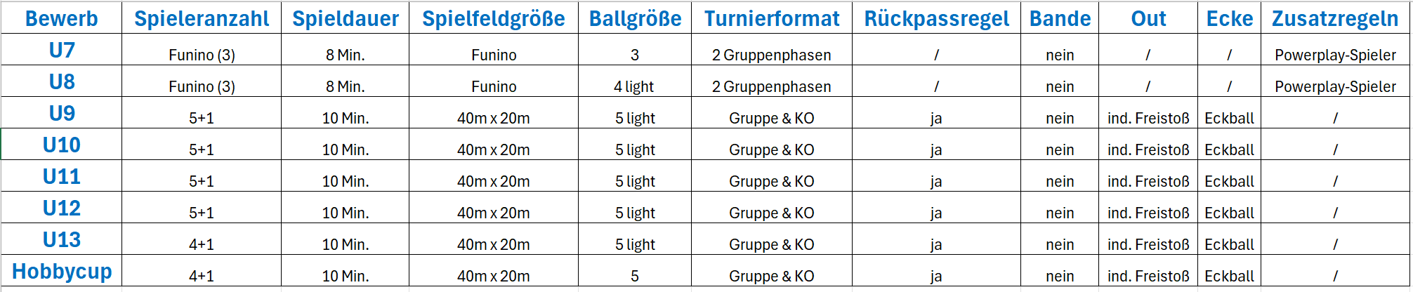 14:00 Uhr: U9 Turnier 14:00 Uhr: U13 Turnier 18:00 Uhr: Hobby Cup