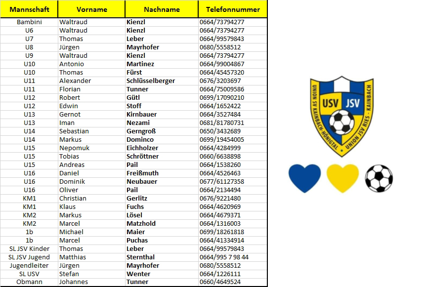 Unsere Coaches und Funktionäre stehen gerne für Fragen zur Verfügung. Über das kompakte PDF File können ihre Daten gesammelt heruntergeladen werden. Weiters steht der offizielle Verbands-Webauftritt zur Verfügung, wo viele Kontaktdaten ersichtlich sind.